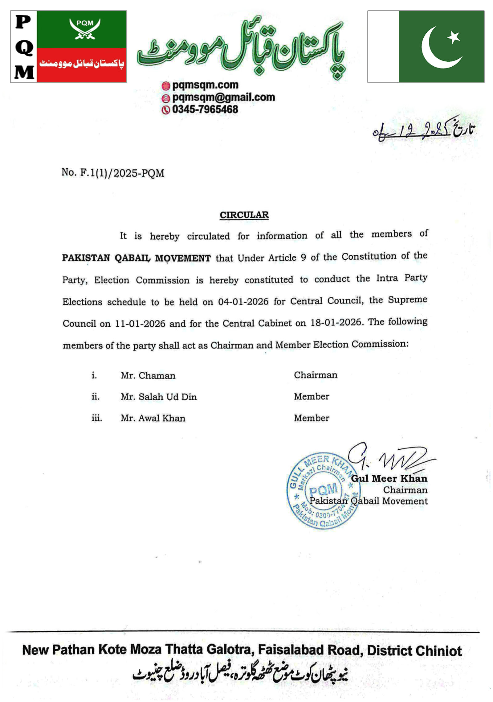 PAKISTAN QABAIL MOVEMENT PARTY PAKISTAN